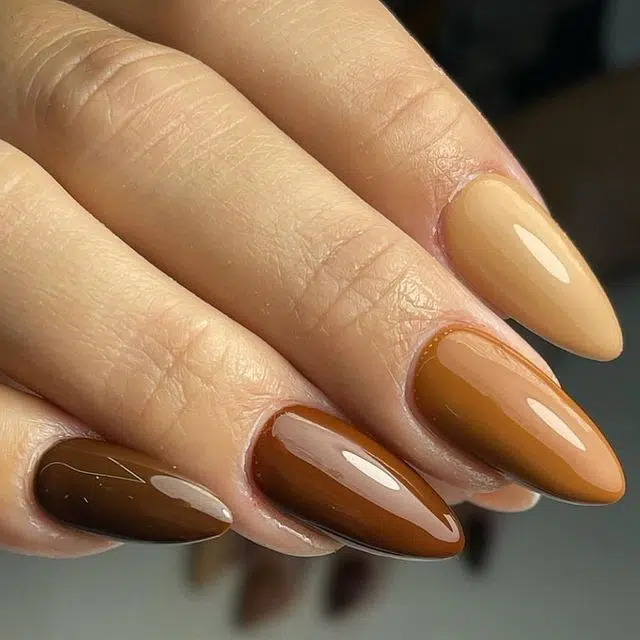 Brown nails are the perfect go-to in the fall, and we love this multi-color approach to a classic style. While each almond nail is *technically* brown, the varying shades give this manicure amazing dimension.